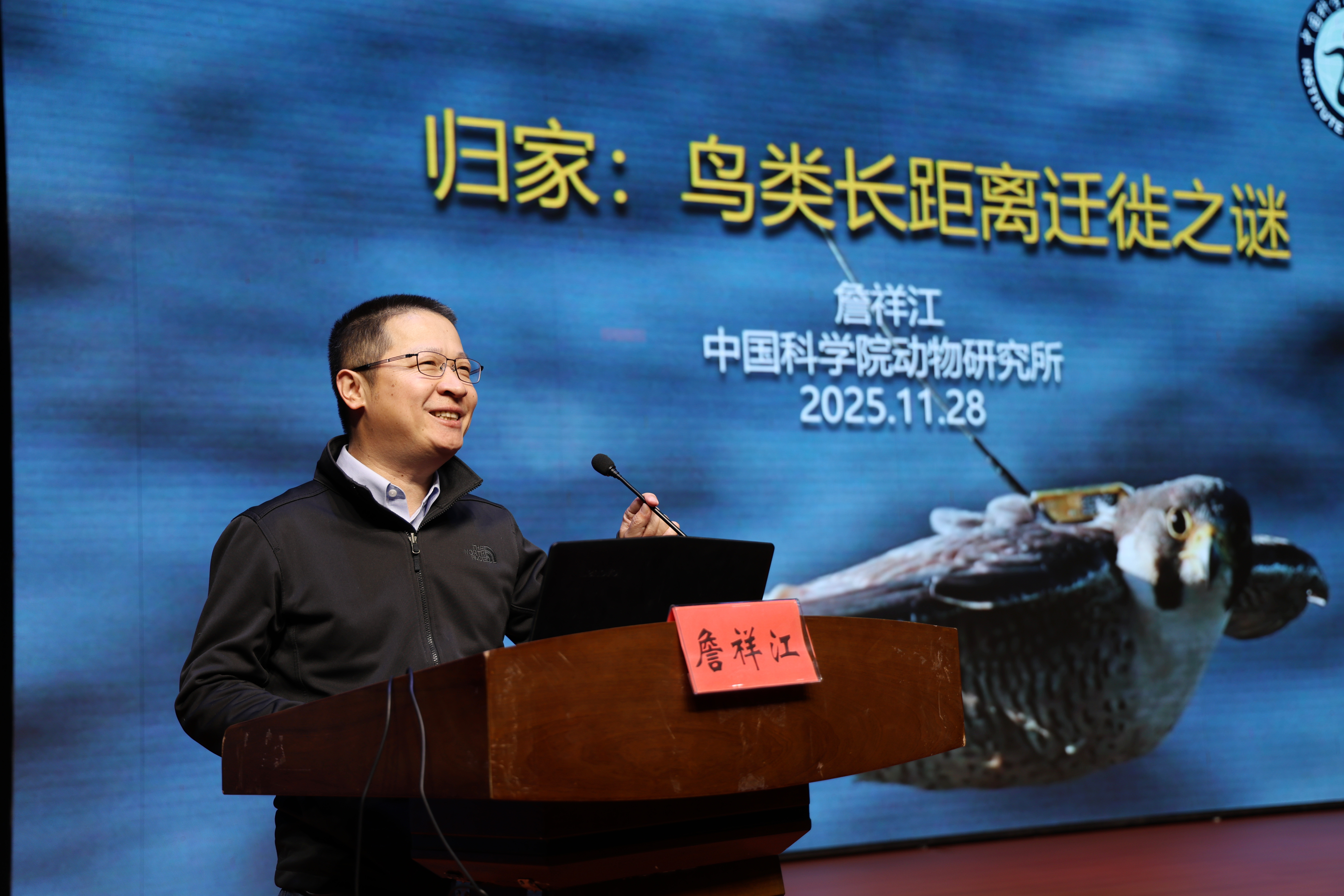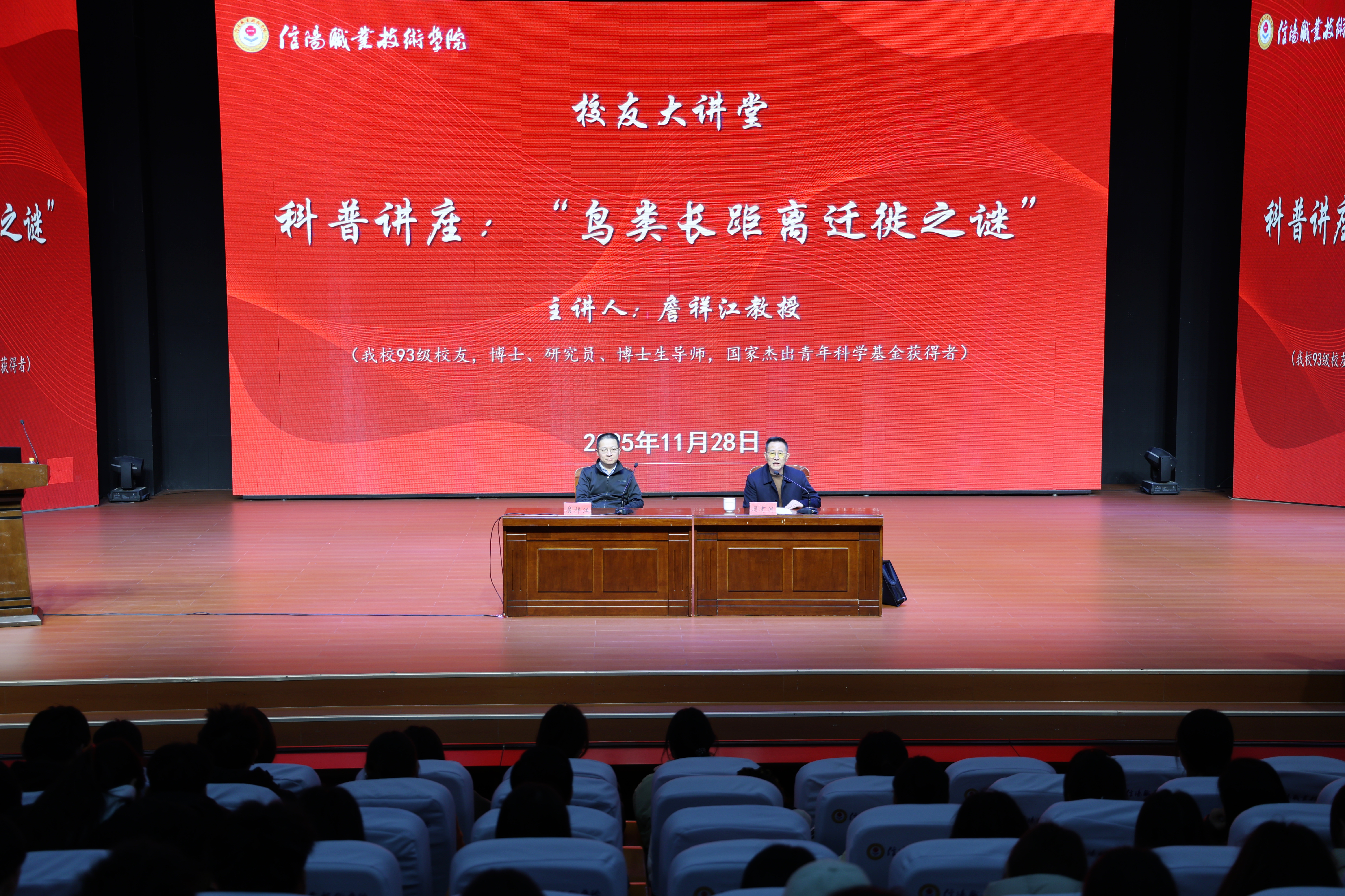 当日上午,作为詹祥江此次返校的核心活动——“校友大讲堂”在图书馆学术报告厅如期举行。活动由学校党委委员、副校长周有国主持,数百名师生现场聆听,共同走进“鸟类长距离迁徙之谜”的科学世界。