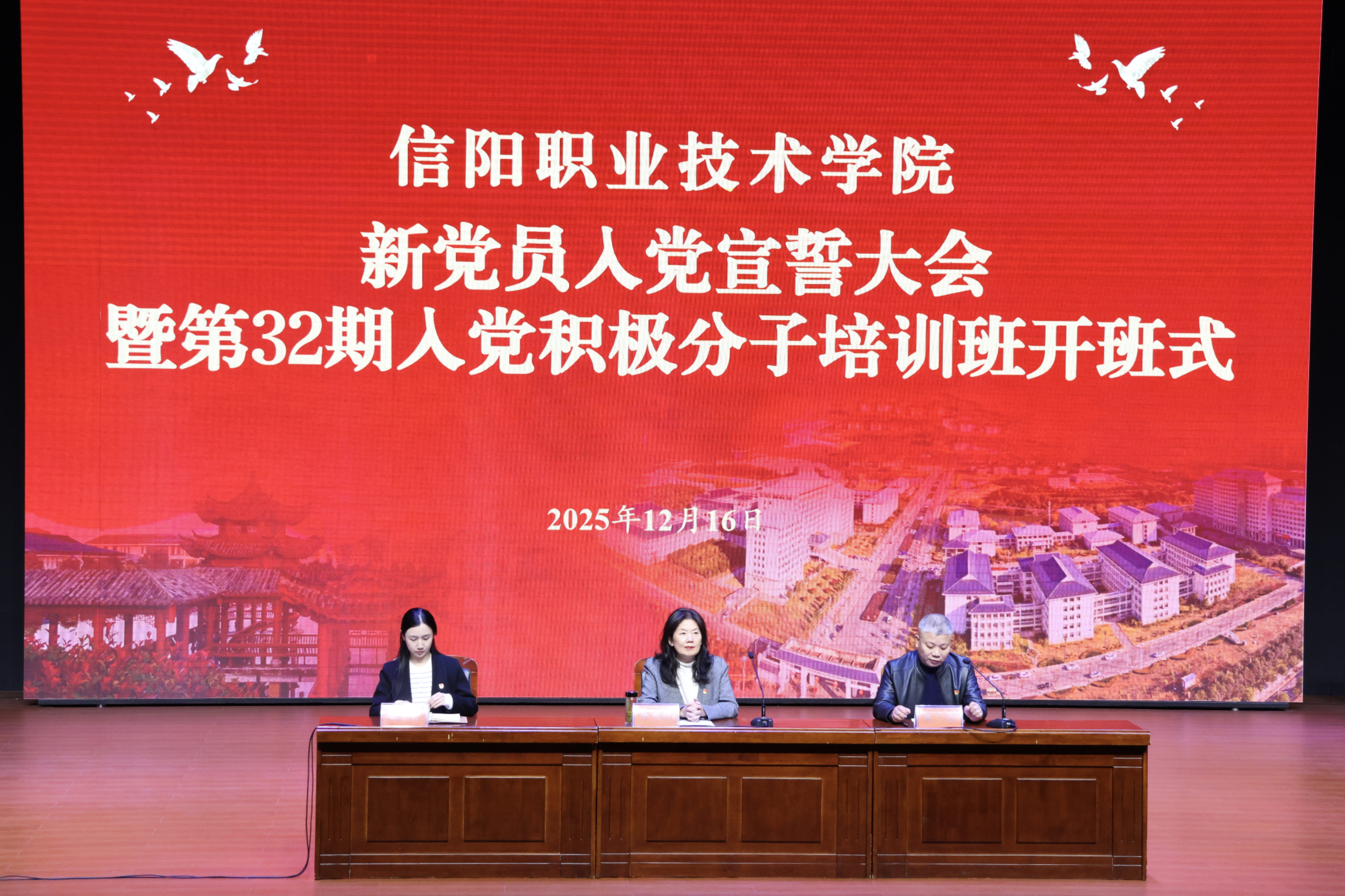 12月16日,我校在图书馆报告厅隆重举行新党员入党宣誓大会,随后举办了第32期入党积极分子培训班开班仪式。校党委副书记蒋有红出席活动并讲话。党委组织部、团委负责同志,各二级院部党组织副书记或学工支部书记、新转正的党员师生、新发展的预备党员以及全体入党积极分子共同参加了本次活动。
