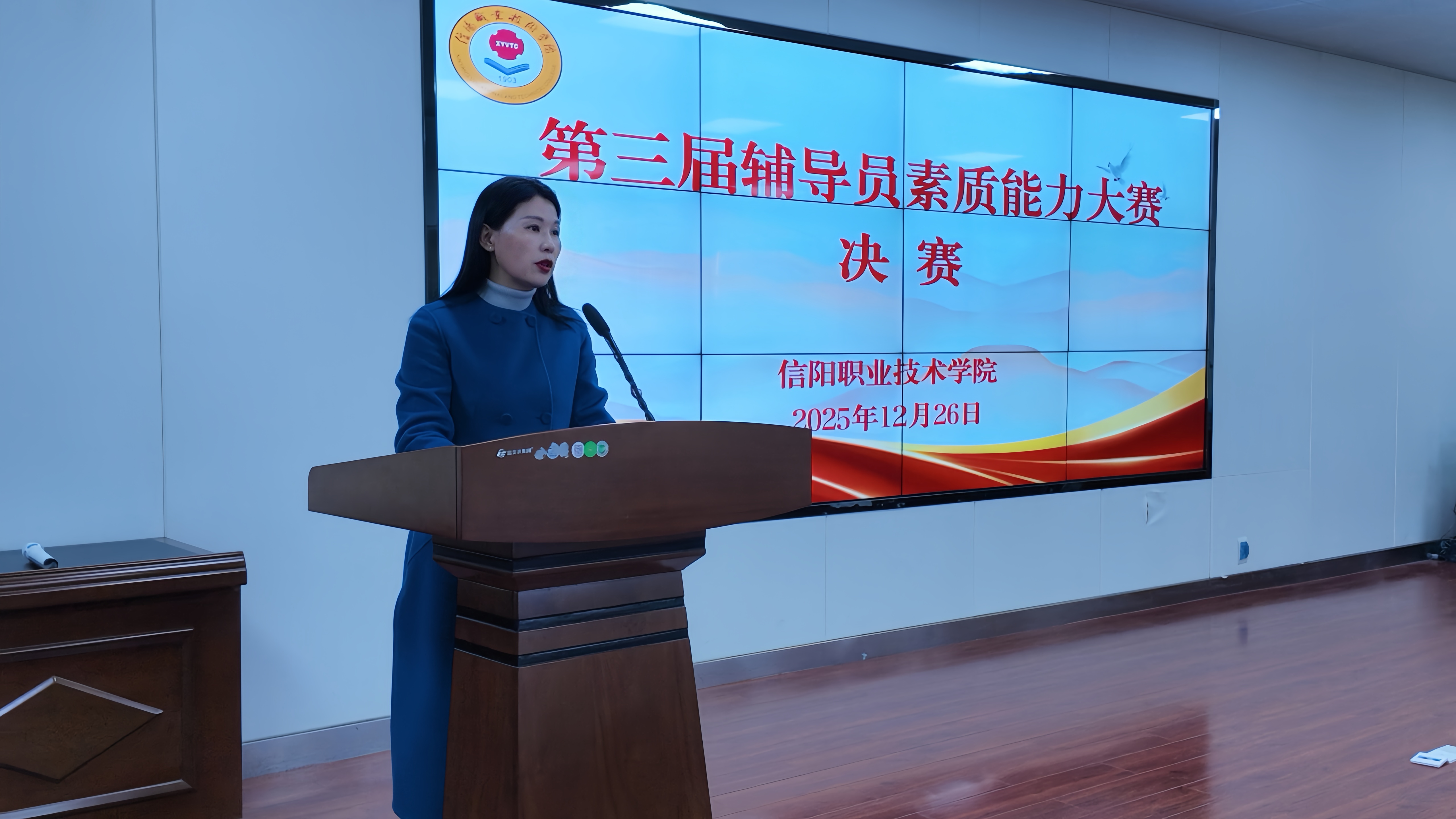 12月26日下午,我校第三届辅导员素质能力大赛决赛在商学院二楼报告厅举行。学校党委委员、副校长严正香出席大赛,各学院书记、负责学生工作的副书记(副院长)、学工办主任、团总支书记、专兼职辅导员代表现场观摩。