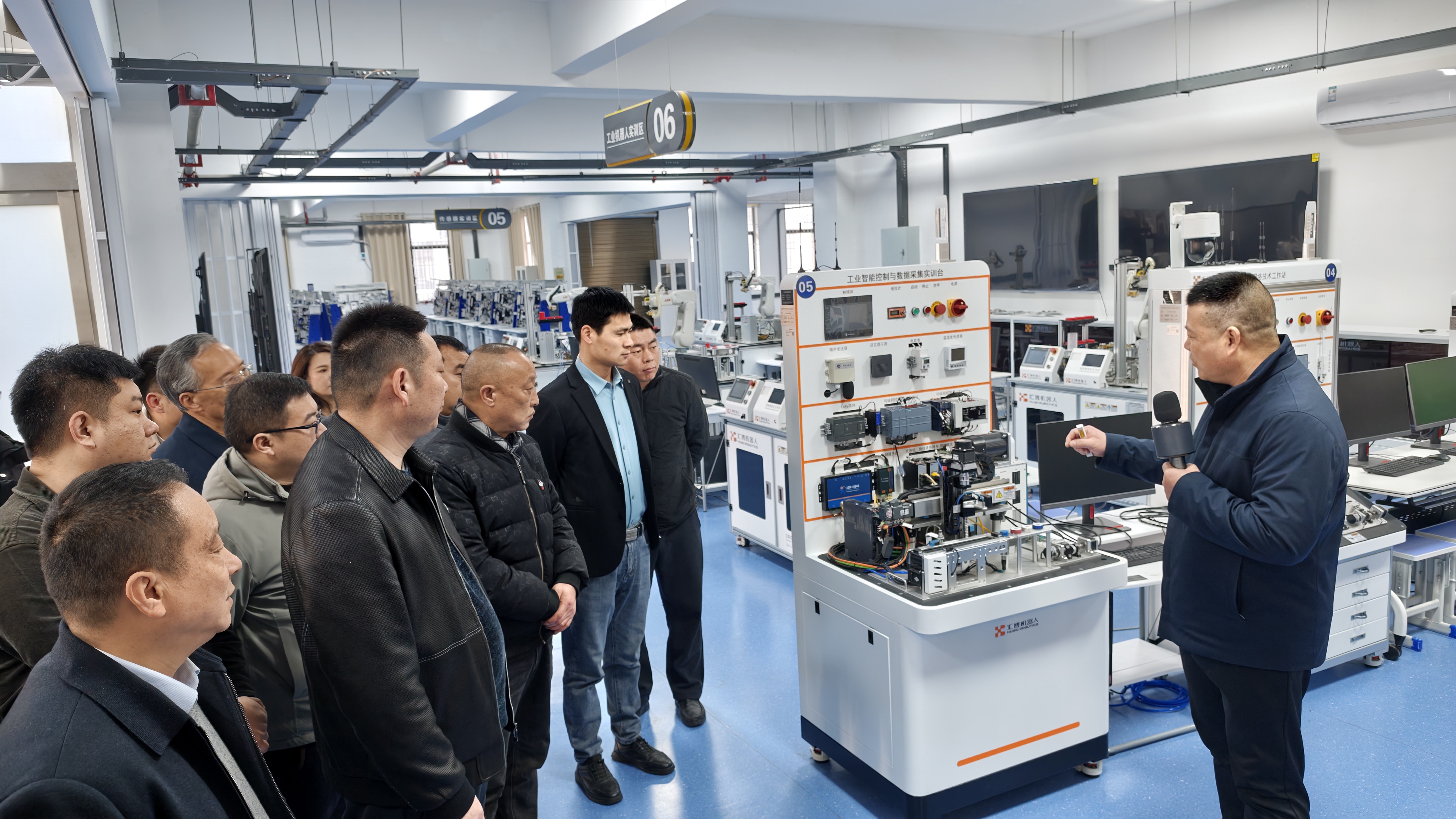 活动伊始,汽车与机电工程学院领导班子欢迎企业代表们到访,并简要介绍了学院的专业设置、人才培养特色及产教融合成果。随后,院长吕争带领大家参观了工业互联网、智能制造等先进实验室与实训中心,详细讲解了各实训平台的建设理念、技术应用及服务产业能力。