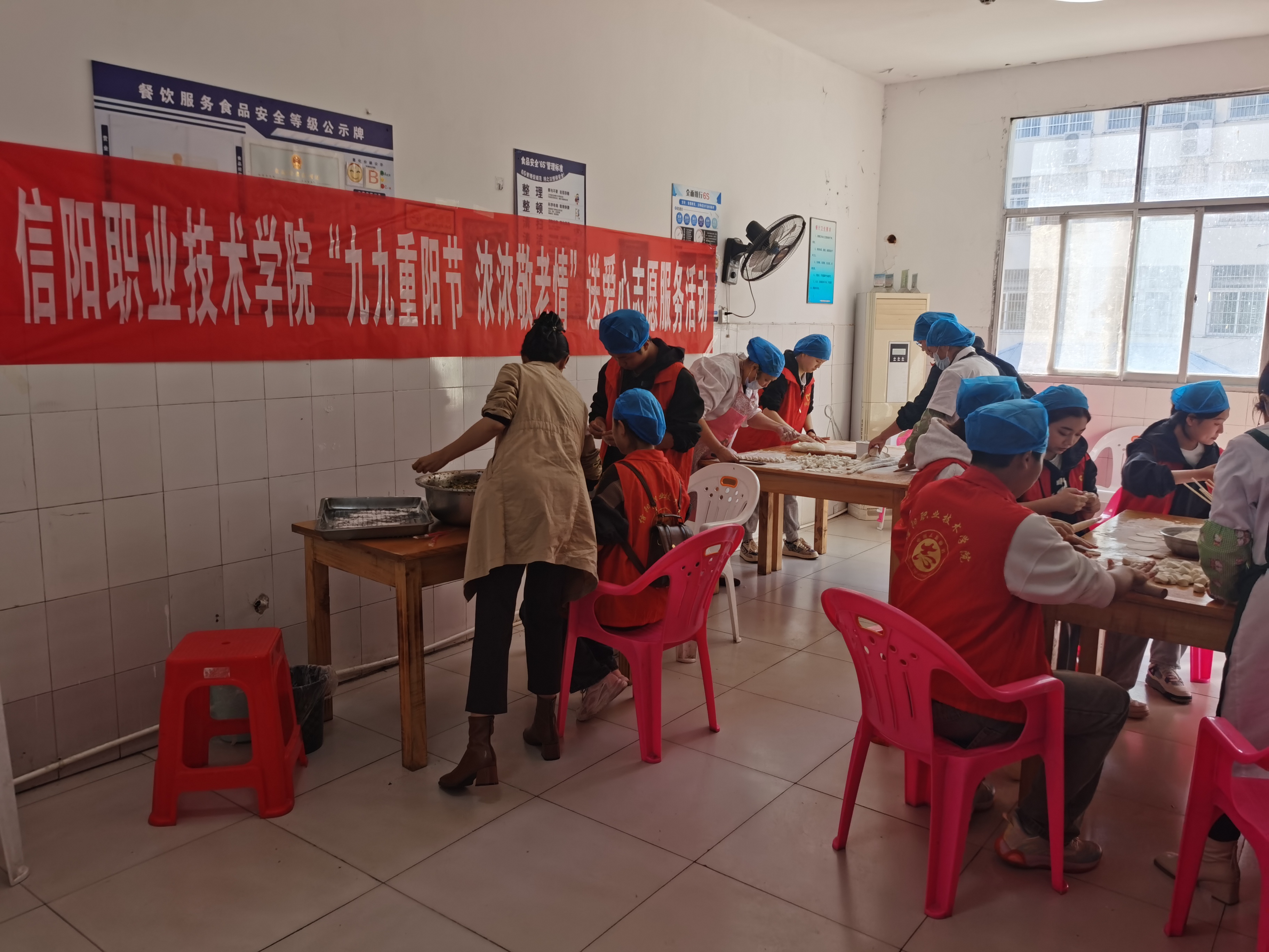 岁岁重阳,今又重阳。为弘扬中华民族尊老、敬老、爱老的优秀传统美德,10月22日上午,学校团委组织志愿者们来到平桥街道办事处社区养老中心开展“九九重阳节 浓浓敬老情”送爱心志愿服务活动,为老人们包饺子、送温暖,与他们一起共度美好重阳节。