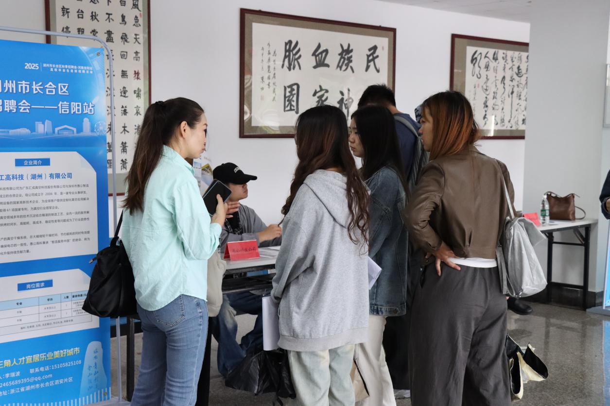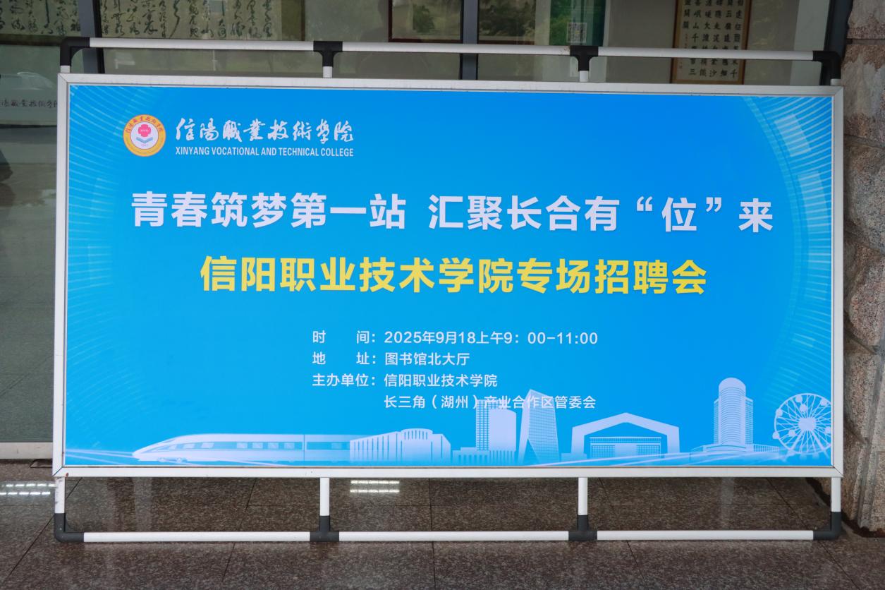 9月18日,“青春筑梦第一站 汇聚长合有‘位’来”,“长三角(湖州)产业合作区信阳职业技术学院专场招聘会”在我校图书馆就业大厅举办,来自湖州市的10余家重点用人单位参会,共提供就业岗位300余个,为我校毕业生搭建了优质的就业对接平台。